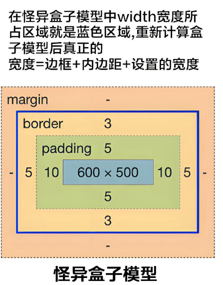 border-box: width 和 height包括内容区域,内边距和边框,但不包括外边距