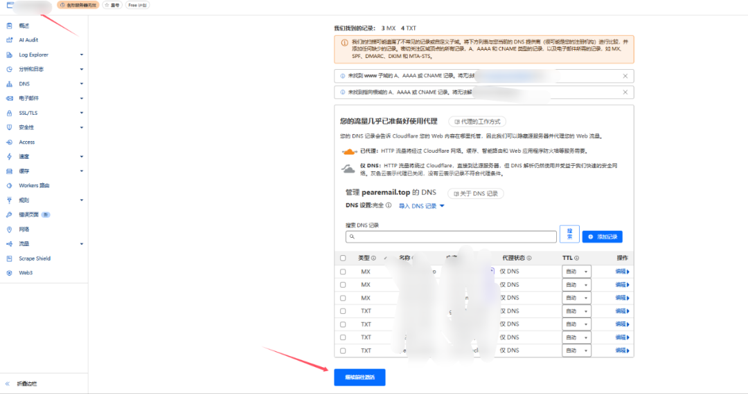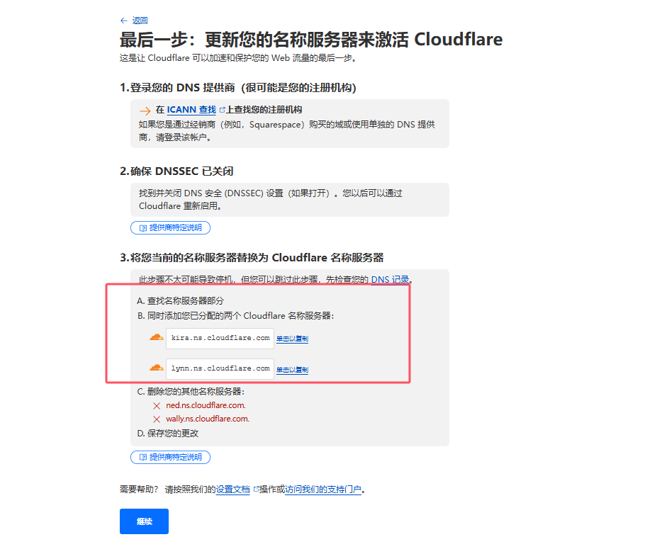 中间未找到的解析记录暂时不用管,直接去激活(后面在Cloudflare上不知道点了什么按钮,自己帮我解析好了。。。记不太清了)